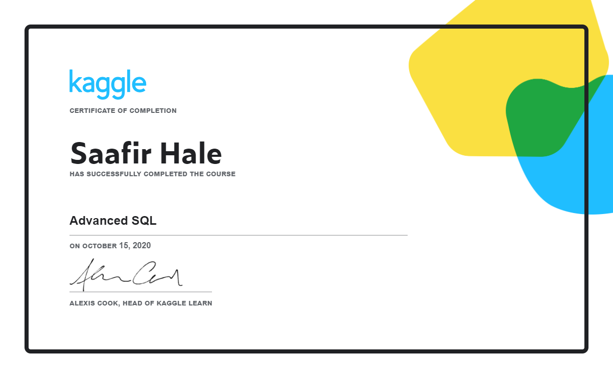You can get in touch with me via telephone at (408) 337-7841 or by sending an email to saafirhale@gmail.com. To view more of my projects, you can view them in either Github or Tableau.